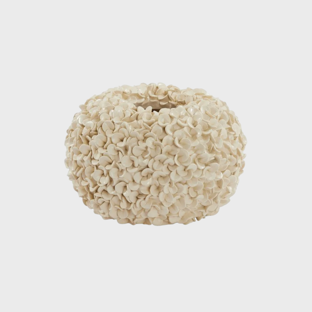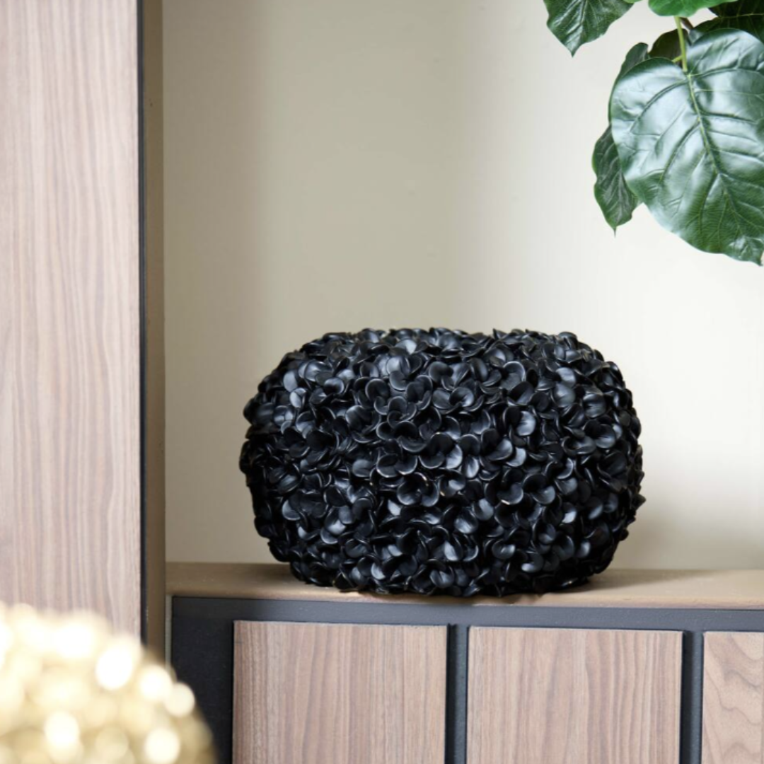 De Light&Living Vaas Deco Ø38x23 cm PHYLIA in mat zwart met 3D bladeren is een moderne en stijlvolle vaas die een verfijnde en natuurlijke uitstraling biedt. Het mat zwarte oppervlak vormt een prachtig contrast met de gedetailleerde 3D bladeren, waardoor de vaas een organisch en kunstzinnig karakter krijgt. Gemaakt van hoogwaardig kunststof. Ideaal voor het tonen van droogbloemen, takken of andere decoratieve objecten. Let op: deze vaas is niet waterdicht en dus alleen geschikt voor droge arrangementen